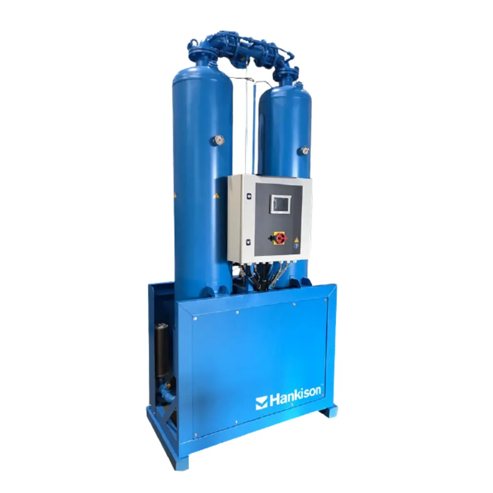 Die HHM Serie ist ein modularer Adsorptionstrockner mit Trockenmittel für Anwendungen mit niedrigen Drucktaupunkten. Der Luftvolumenstrom liegt je nach Modell bei 5 bis 300 m³/h. Die Auslegung unterstützt Drucktaupunkte von -40 °C bis -70 °C.