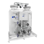 Kufen-Einheit: Plug-and-Play auf Rahmen, medizinisch oder industriell; 3,2–30 m³/h, integriert PSA, Ventile, Steuerung und Puffer, schnell montiert sicher.